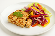 Plant-based tofu tacos prepared Ensenada-style with fresh vegetables and Baja California seasonings. A vegetarian version of the classic fish tacos with protein-rich tofu.