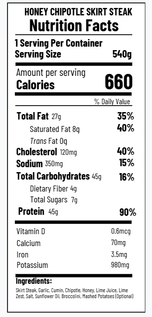 Savor the bold flavors of the SUNFARE Honey Chipotle Skirt Steak. This delicious dish features tender, marinated skirt steak grilled to perfection, delivering a smoky chipotle kick.
