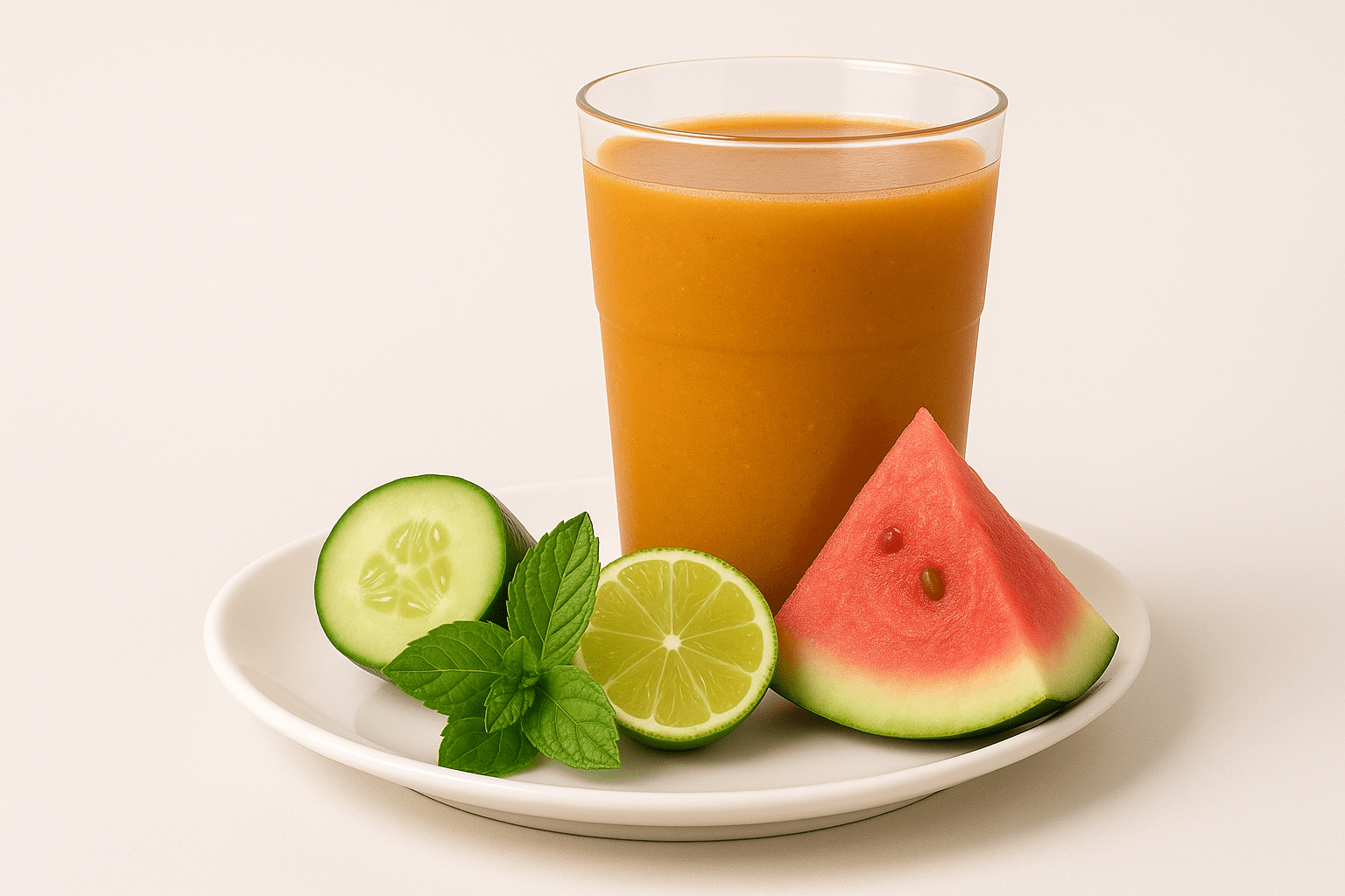 Cucumber, Watermelon, Lime, Cold Water, Mint Leaves, Stevia